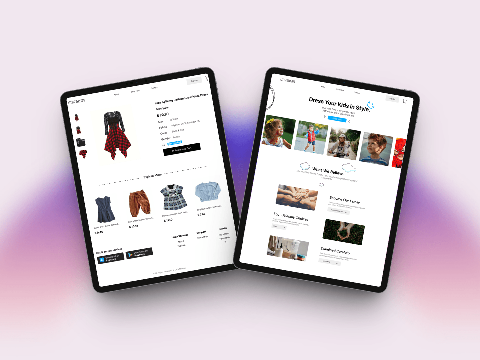 Little Threads is a playful, user-friendly e-commerce platform designed to make shopping for children’s clothing simple, joyful, and trustworthy. The project focuses on intuitive navigation, clean visuals, and a seamless shopping flow tailored for busy parents. It emphasizes product clarity, age-specific filtering, and emotional trust-building through design.